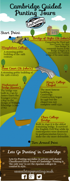 The college backs tours running through 7 riparian colleges, under 9 bridges and past famous architecture and historic buildings.