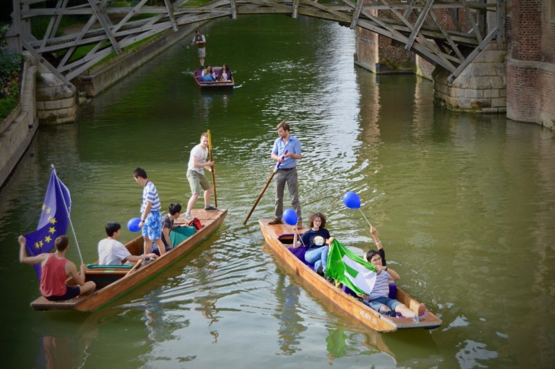 This year, members of the Cambridge University European Society and locals saluted the special day with waving flags of all the EU member states on the Cambridge bridges at Garret Hostel Lane and Silver Street as punts passed beneath.